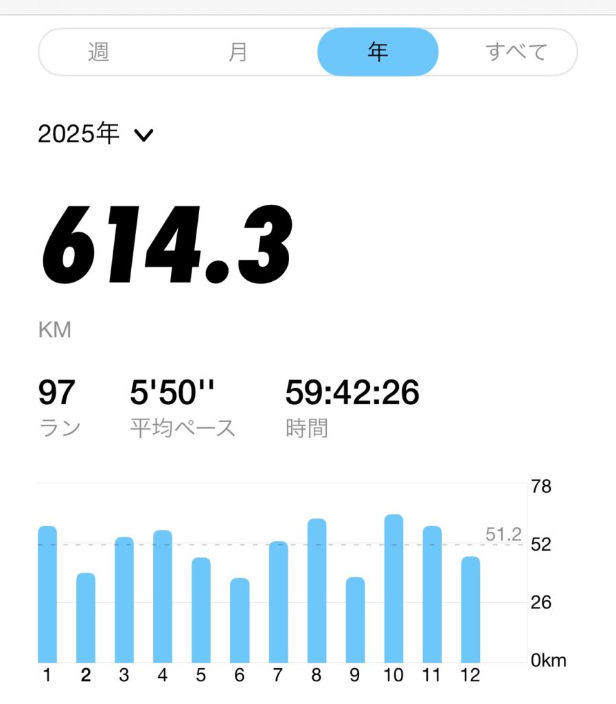 ちなみに、2025年は↓の通り、年間で600km目標でランニングしました!